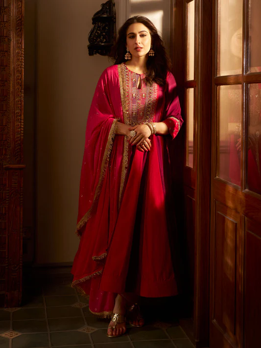 DESIGNER WEAR EXCLUSIVE FENDI SILK FABRIC SEQUENCE EMBROIDERED TOP AND PANT WITH DUPATTA