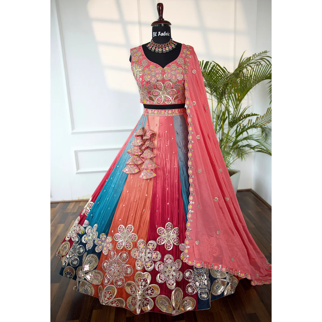 Launching 4 meter flared Fox Georgette Sequins Embroidered Work Lehenga choli, Exceptional Quality with Can-Can and Canvas Layers, A Perfect Fusion of Glamour and Comfort