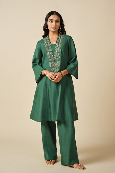 HEAVY RAYON COTTON FABRIC WID CHICKEN KARI STYLE EMBROIDERY WORK KURTI AND PLAZZO ET